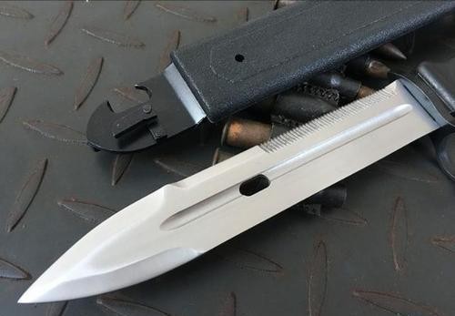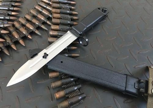 到了上世纪七八十年代的时候,基于军事工业的进步完善以及现代战场战斗模式的改变,重穿刺而不能进行切割劈砍的五六式或六三式三棱军刺,也已经到了更新换代的时刻,而最终取代了三棱刺成为解放军经典制式步枪“八一杠”最佳搭档的,则是宛如一柄短剑的军刺比赛双用途军刀-81式刺刀。