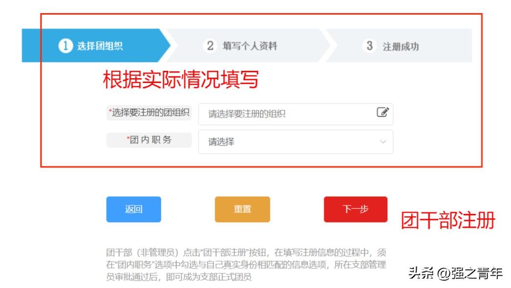 注意:关于网上共青团智慧团建“团员注册(报到)”可能采取管理员录入、团员自己注册两种方式的一种或结合方式,具体实施方法参照当地团组织要求。