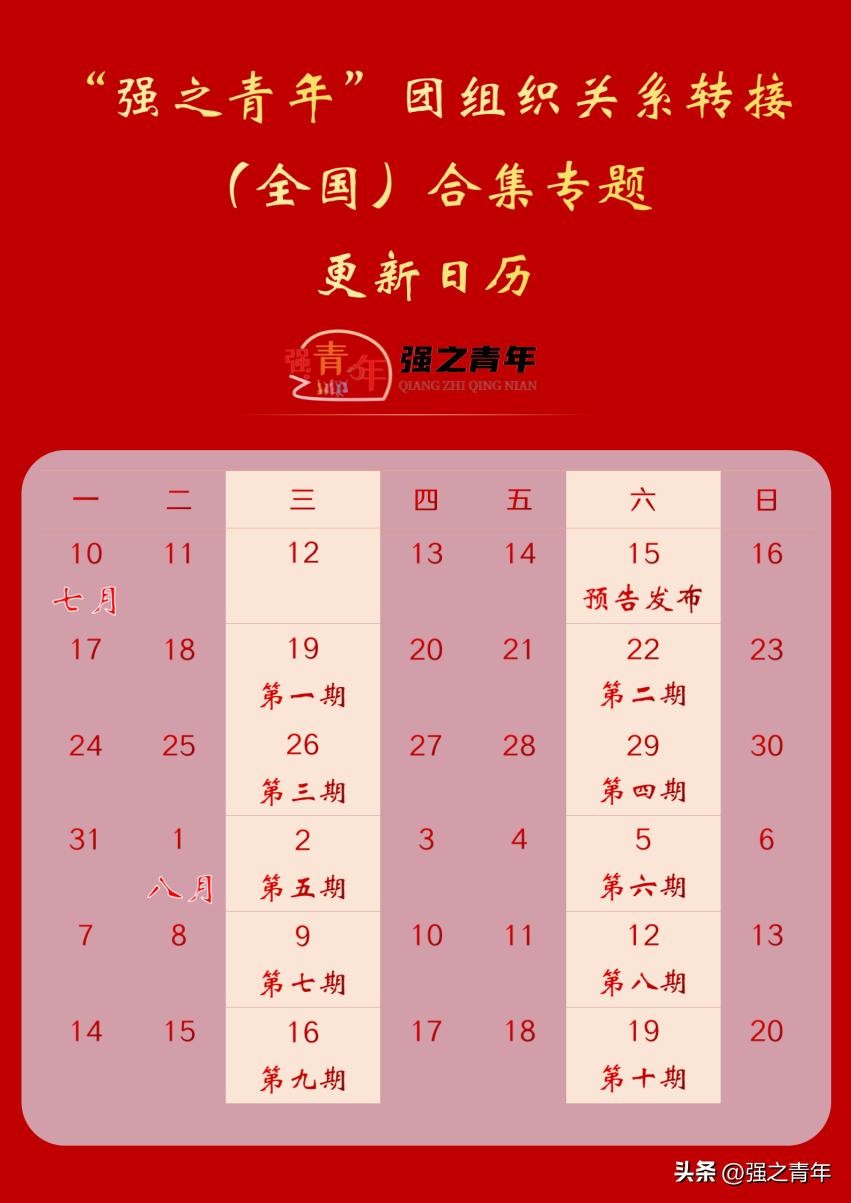“强之青年”团组织关系转接(全国版)专题于2023年7月15日-2023年8月19日在“强之青年”媒体平台号首次公布上线。