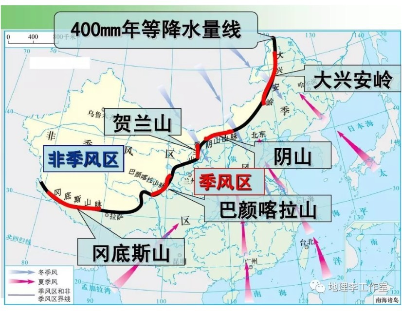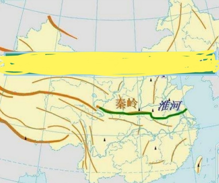 脑补:秦岭-淮河一线是中国季风区的南方和北方的地理分界线。
