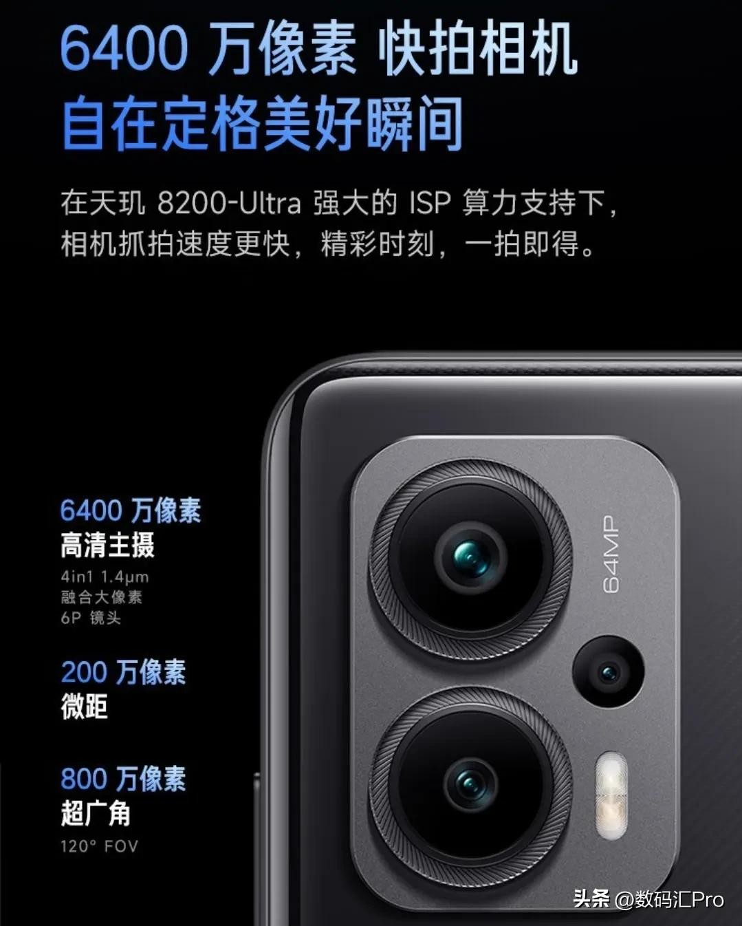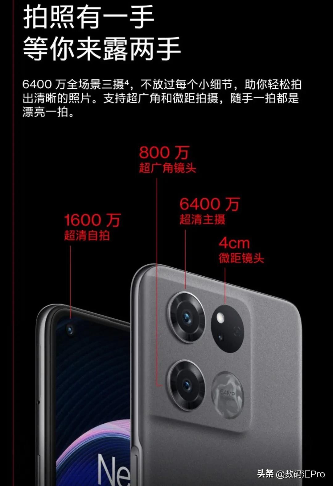 6400万主摄(1/1.97英寸,0.7微米)➕800万广角➕200万微距,前摄1600万