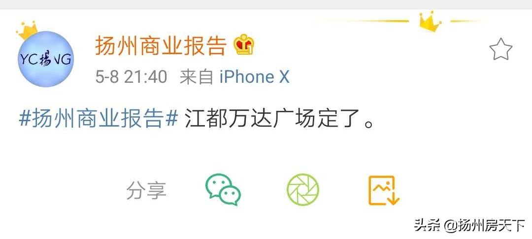 5月8日晚,微博@扬州商业报告发布消息:江都万达定了!只有六个字的微博,却引发了众多扬州网友的围观。