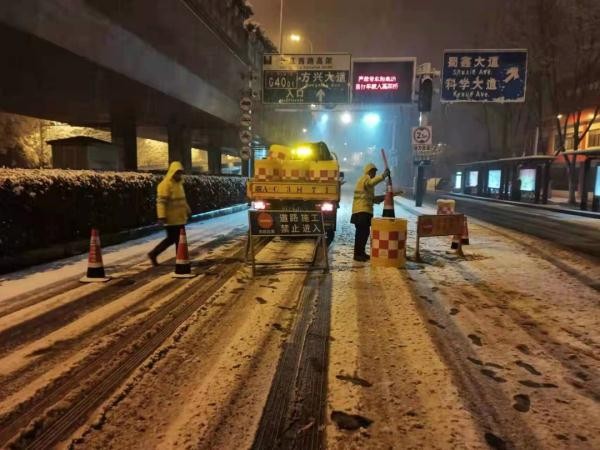 合肥市城乡建设局市政处连夜战风雪保畅通。经过彻夜不断除雪作业,截至早上7时许,全市各大高架主线桥都可正常通行,局部有少量积雪,大量钢箱梁区域,两侧稍厚,通行正常,无结冰。