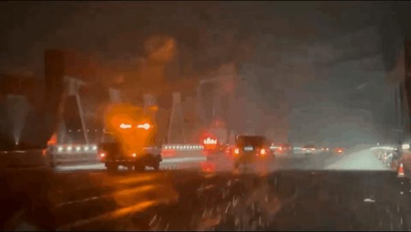 在此提醒广大司乘:降雪期间,降低车速,保持合理车距,尽量不要超车、踩急刹车,安全行车。