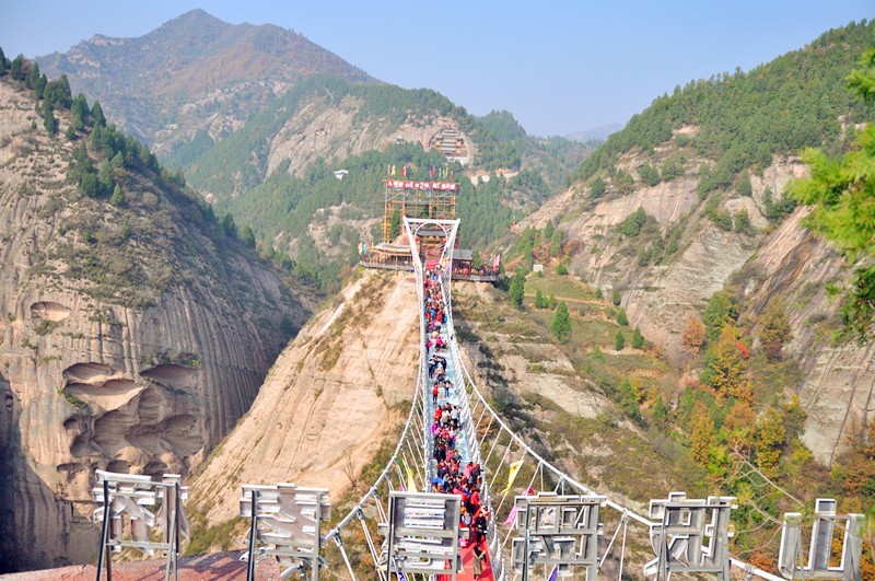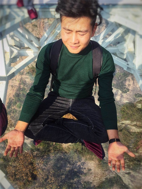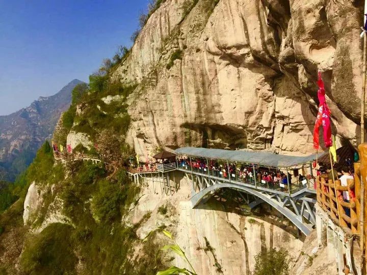 想要站在玻璃栈道上拍张“美美哒”的照片,并不是件容易的事。不仅要有胆量,还要有好的体力。乘索道五分钟或徒步一小时先到达九龙禅院,再沿蜿蜒的步道上山,绕过腰道崖,玻璃栈道就在眼前。