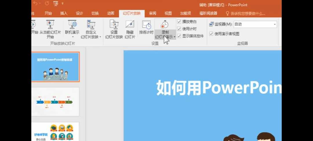 4.打开幻灯片放映,录制幻灯片演示。