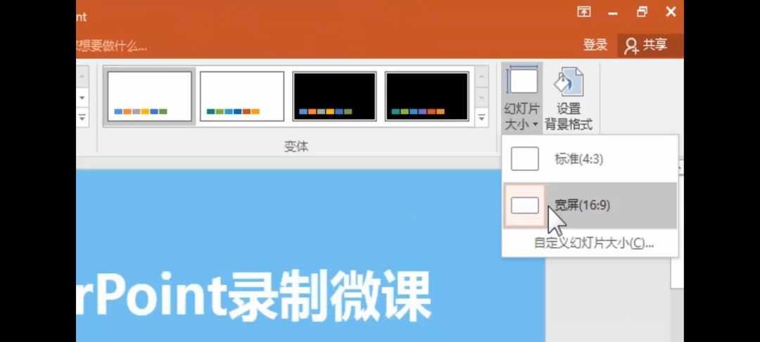 2.把幻灯片大小设置为16:9。