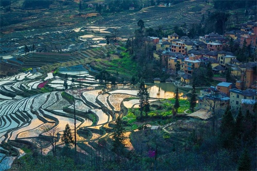 当然,最不能错过的就是观赏梯田的日出和日落了。当太阳从东方升起时,整个梯田都被染上了一层金色的光辉;而当太阳从西方落下时,整个梯田又仿佛被染上了一层红色的晚霞。这两个时刻的梯田,都是最美丽、最动人的。