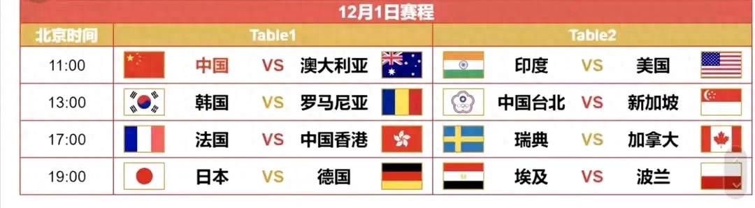 12月1日体育直播CCTV5、央视直播混团世界杯!国乒打响第一炮!