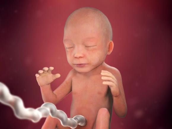 您的宝宝现在看起来几乎就像一个微型新生儿。功能,如嘴唇和眉毛更加明显,但将彩色他眼中的色素不存在呢。