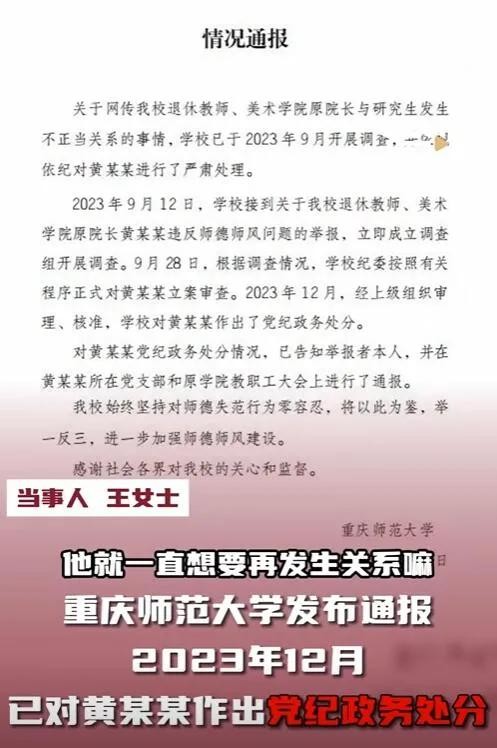 重庆师范大学美术学院原院长黄某某,被实名举报性侵女研究生,利用权利将学生灌醉,并多次实施性侵!