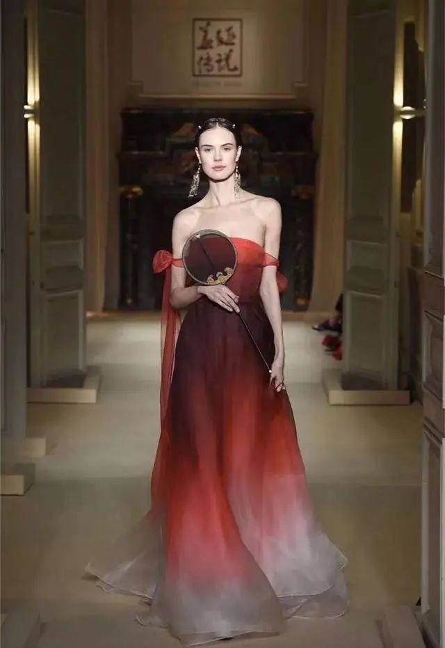 并且用了中国山水水墨画的色调,浅墨相宜,足部相影响中国的山水水墨画,也是人们崇尚的一种艺术,他把这种艺术用于服装当中,并且柔和了东方女性之美,让这两个艺术完美的融合在一起,也让人真实的惊艳了一把。