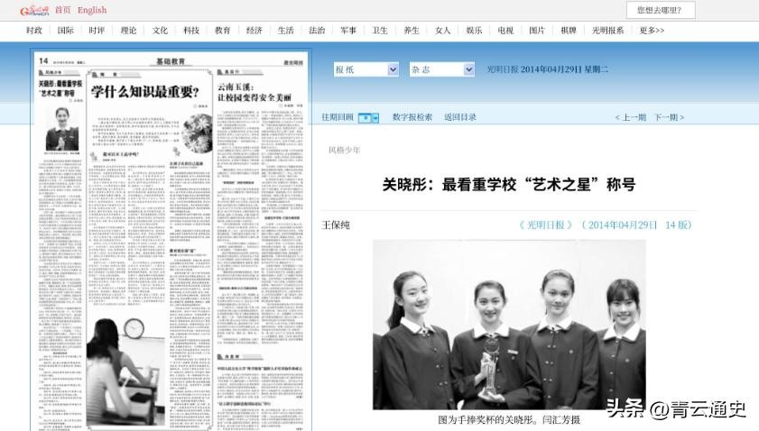 信息来源:2014年4月29日发表于光明网——《关晓彤:最看重学校“艺术之星”称号》