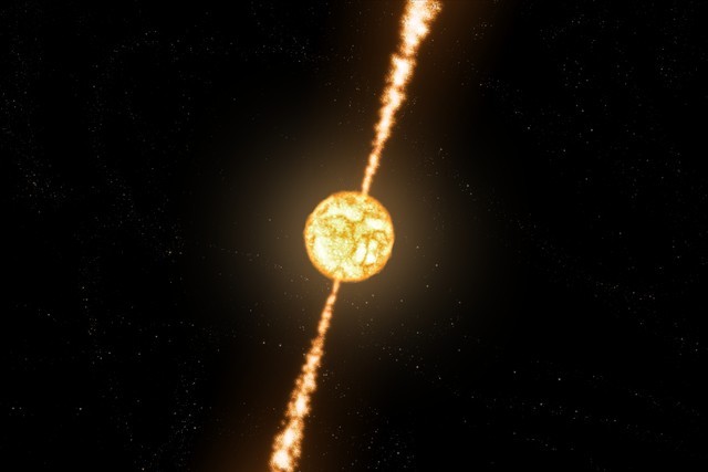 中子星是由原本的恒星在超新星爆炸之后塌缩形成的。恒星在燃烧氢、氦等元素燃料的过程中,会产生核聚变,产生能量和光辐射。当燃料用尽,恒星内部的核反应会逐渐停止,没有了核聚变的支撑,恒星就会塌缩,直到核物质密度达到非常高的程度,使得原子核被挤到一起,中子之间相互作用力达到平衡,形成中子星