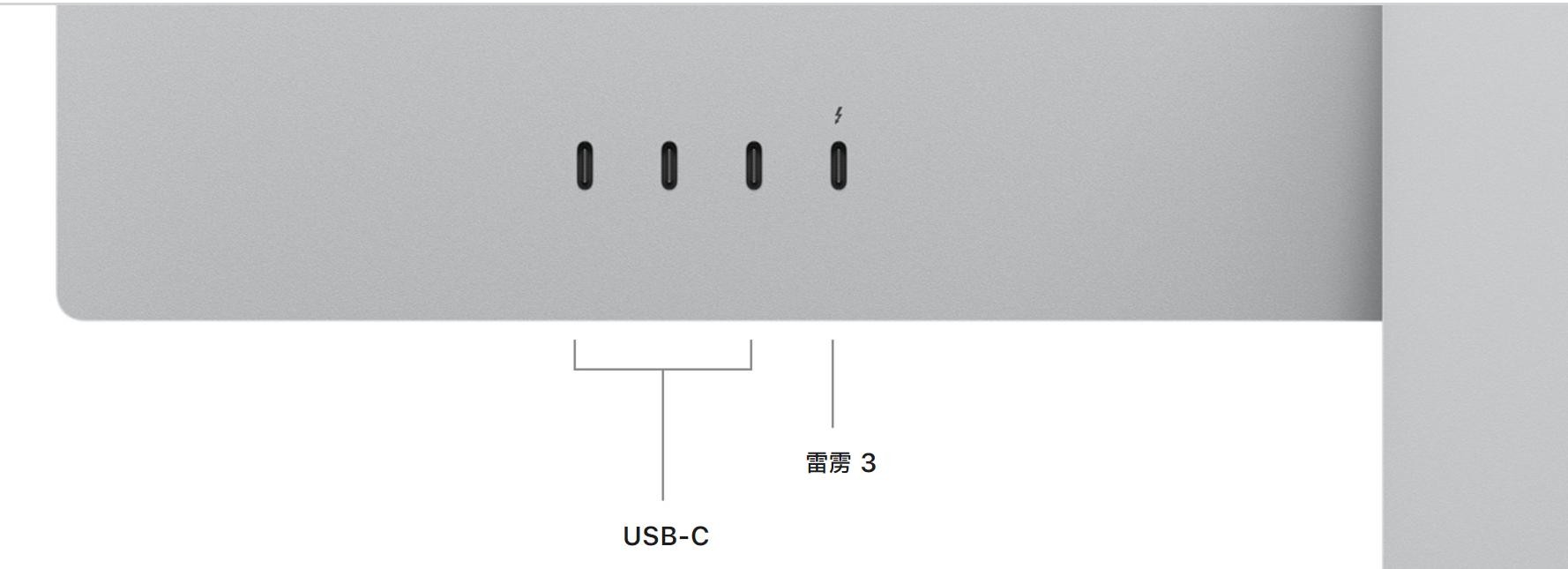其他方面,Studio Display的亮点也不少,比如有四个USB C口,其中一个支持雷电4;搭载了6扬声器,外放效果很有保证。