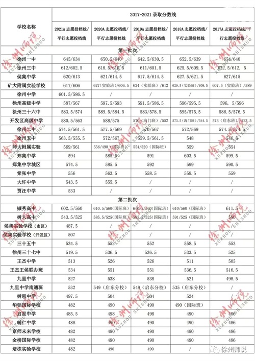 近五年徐州中考各高中校录取分数线