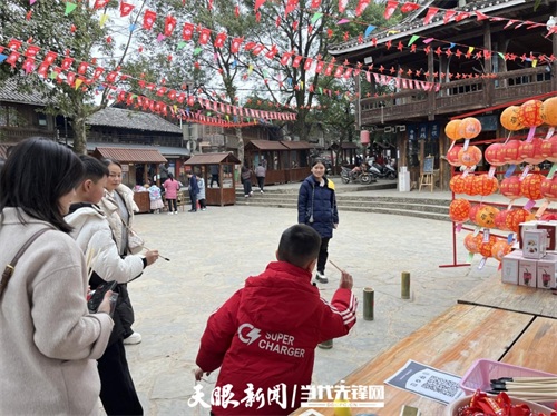 除此之外,岜沙苗寨还推出“游岜沙猜灯谜”“欢乐投壶”“寨老讲故事”“树神祈福”“新春打糍粑”等互动体验活动,让游客不仅可以品尝到从江特色香禾糯、腊肉香肠等特产,还能玩游戏赢礼品、写福字印红包,畅享福气满满的春节假期。“现场感受到的是苗寨的传统文化,活动设计也挺有当地的特色。”广西游客梁女士说。