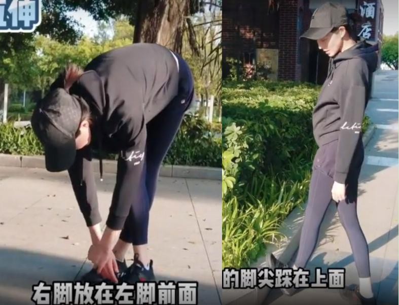 下一秒她轻松弯腰触地,便提醒屏幕前的网友弯腰前记得双腿交叉屁股往后顶,这样才可以避免拉伤。然后张钧甯脚尖顶在石头上,紧跟着做两组拉伸运动。在阳光的照耀下,她修长的双腿和傲人的姿态展露无遗。