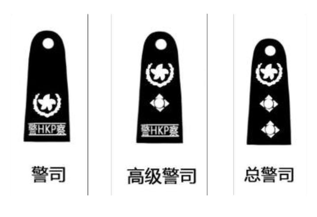 其肩章由香港警察英文缩写“HKP”和“警察”的中文字样,另外再加一个香港警察的警徽组成。从最基层的警员到警署警长,统称为“员佐级”。