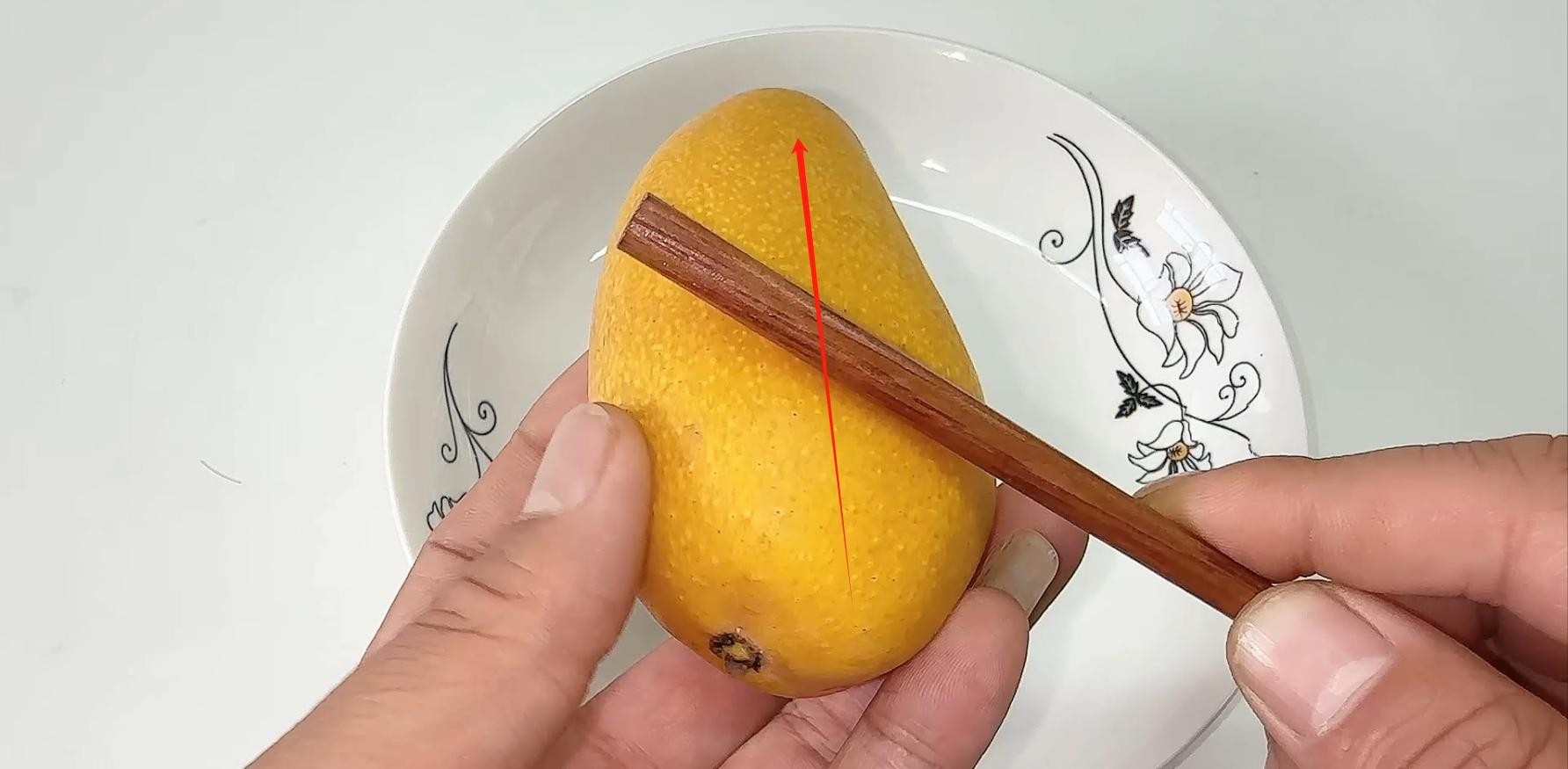 给芒果去皮,原来这么简单,只需一根筷子就能解决,几秒钟就剥一个,非常简单,果肉完整不浪费。