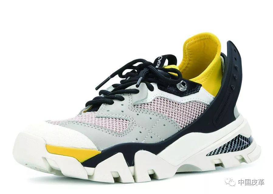 鞋款的设计上加入了更多的撞色以及撞质的设计,再结合当下大热的老爹鞋底,让厚重感的鞋款呈现出上世纪80年代的街头风,颇受时尚达人的追捧。