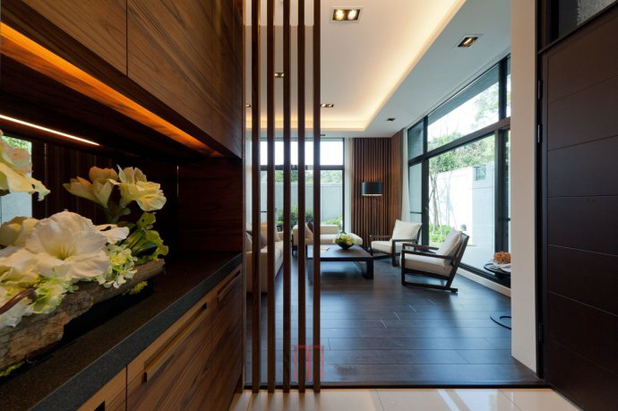 家居中矮柜的作用不少,其中之一就可以化解门对门的不利影响,在大门与卧室门之间设计一个矮柜,遮挡的同时还有不错的收纳作用,要是觉得遮挡不全面的话,在矮柜上方可以做一些镂空的设计,或者安装珠帘也是不错的做法。