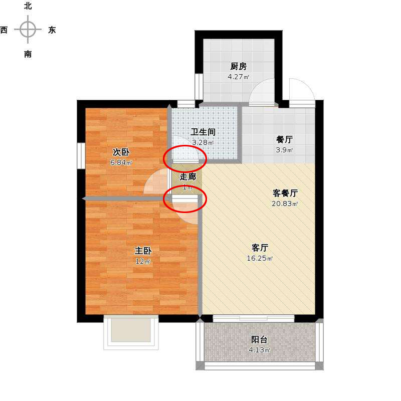 2、卧室门对厕所门