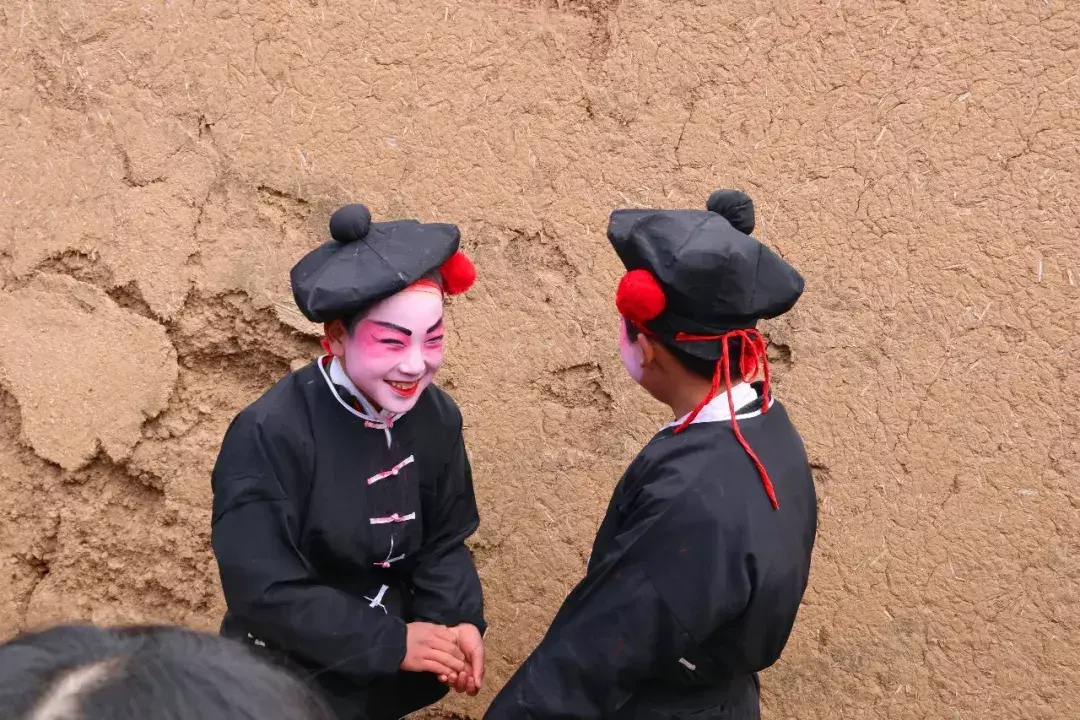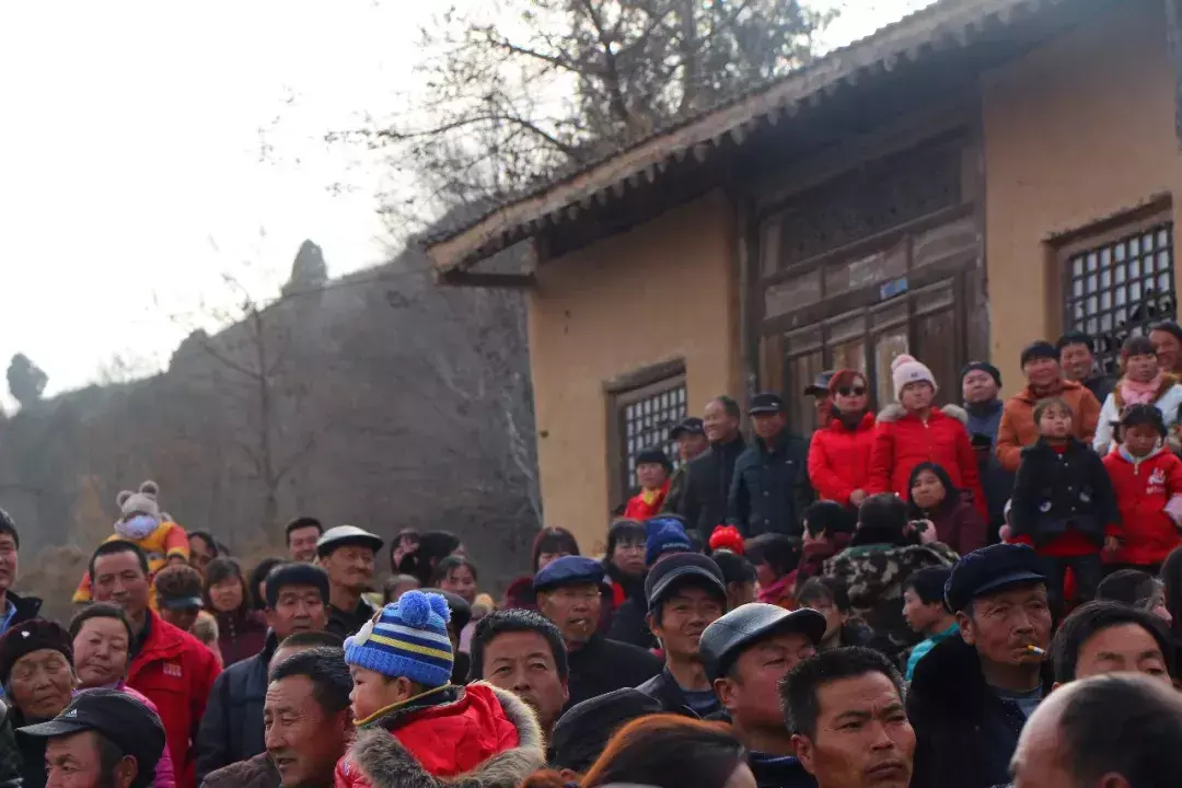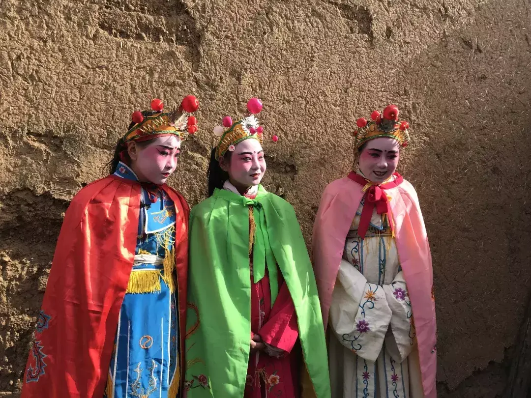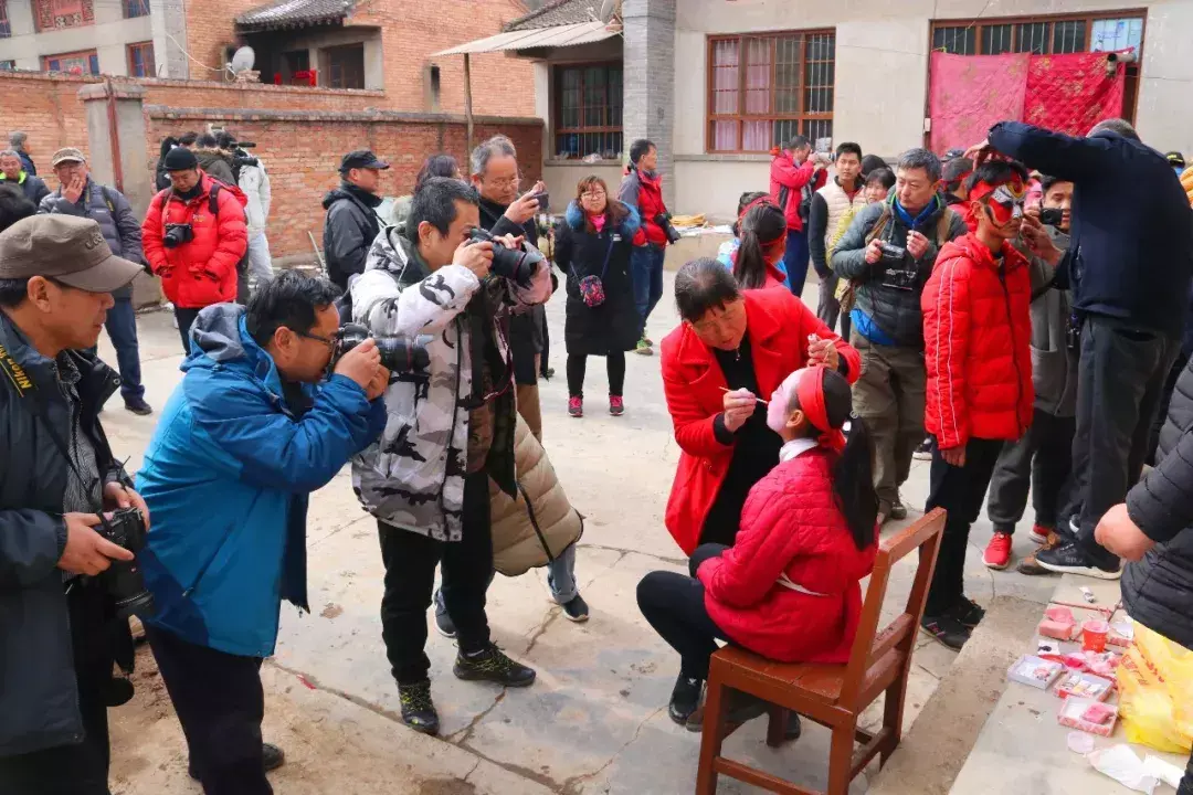 院子里化妆拍照热火朝天院子外乡亲们在村头闲聊等着演出开始