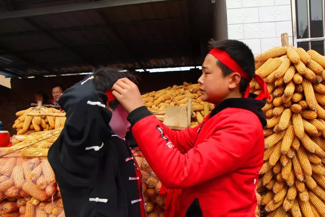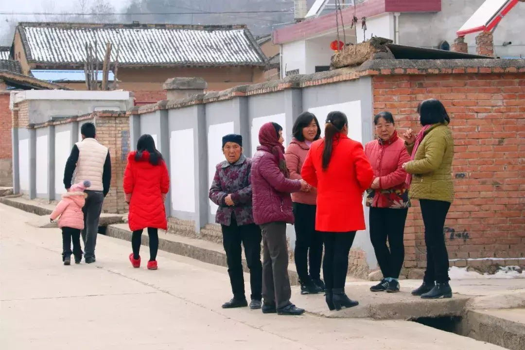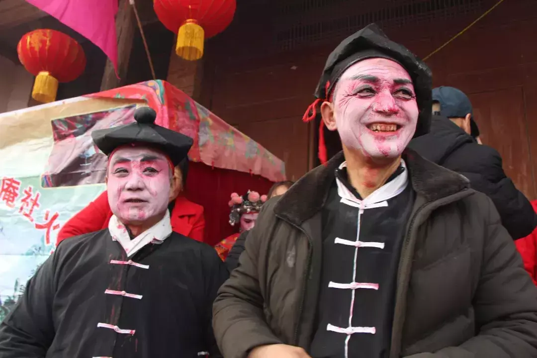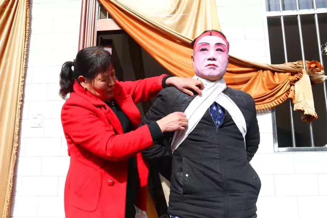 院子里化妆拍照热火朝天院子外乡亲们在村头闲聊等着演出开始