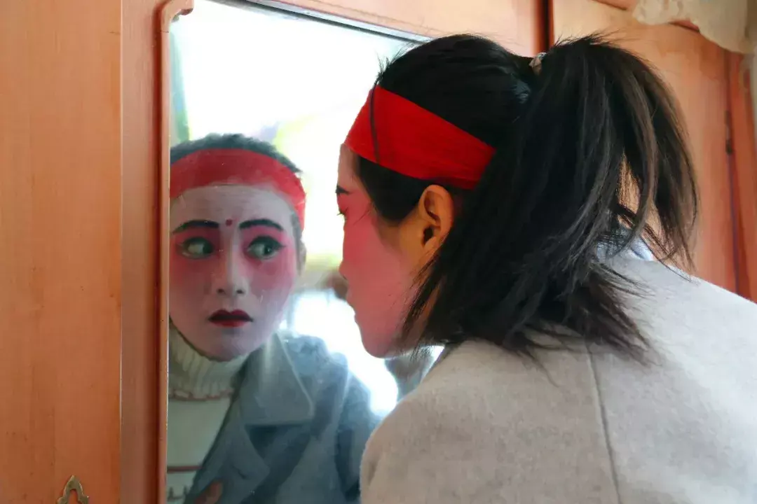 每年过年社火表演,闫春林全家都要齐上阵。妻子负责化妆,两个女儿也参与表演。大女儿有了孩子后就很少表演了,小女儿闫璐云从9岁开始表演跑旦《黑虎搬三宵》,现在20岁了,是长安大学的大二学生,每年寒假回家还会参加表演,这次在血社火《三打祝家庄》中演的是扈三娘。