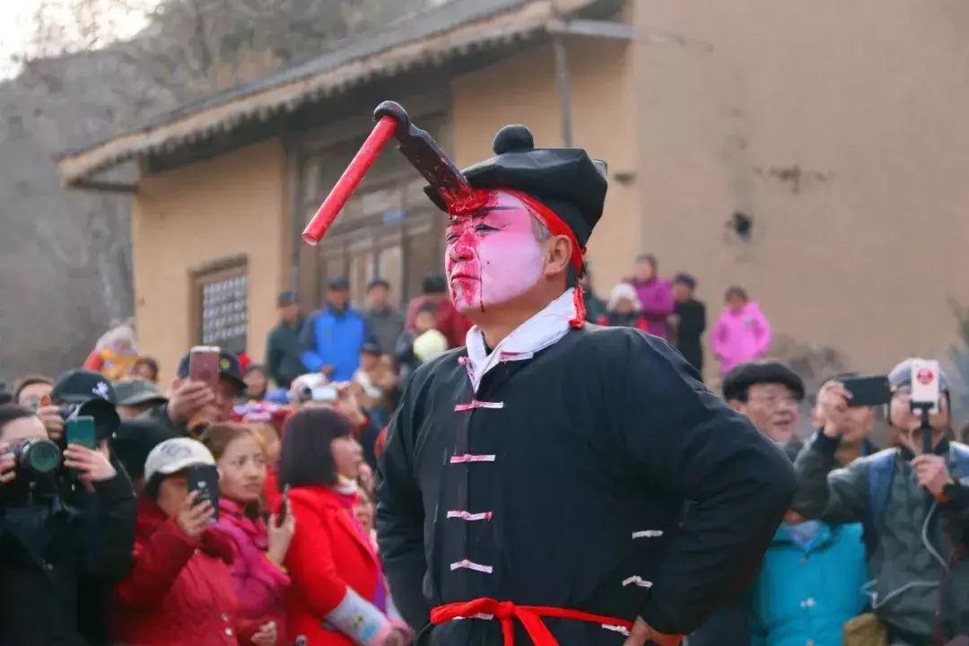初看这张照片,朋友们有没有精神为之一振(吓)?这张“血淋淋”的照片不知吓坏了多少人?又勾起了多少人的兴趣?这是陕西宝鸡地区非常有名的一种社火表演形式“血社火”。昨日下午四点(正月初十),在宝鸡陇县闫家庵村就有一场这样的表演,一大早陕西戏曲广播官微团队就赶赴现场,通过微博直播以及今日这篇文章,为大家全面呈现神秘奇特的“血社火”。