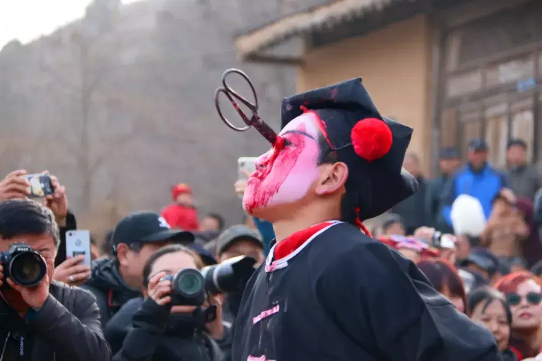 但我们也相信,每年成百的媒体工作者对“血社火”的视频直播、采访报道、转发宣传,一定会让“血社火”这一神秘的民间艺术被更多的人所关注并焕发出新的光彩。