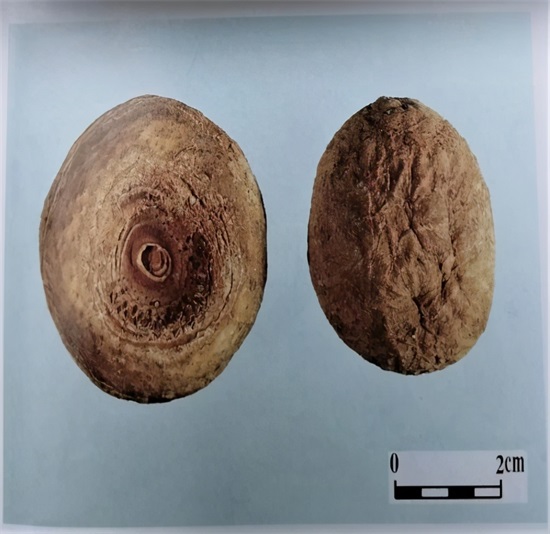 (2)南星的凹陷茎痕大(约占块茎直径1/2或更多),半夏的凹陷茎痕小(约占块茎直径的1/3)。
