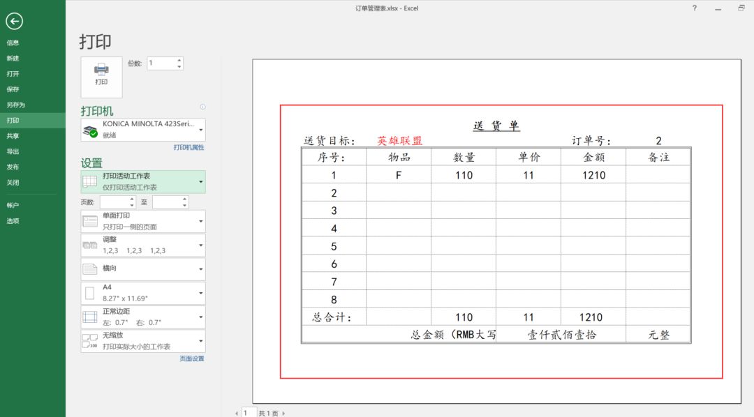 如果你经常要做这个表格,然后打印,就可以这么提前设置一下,后面就可以直接按打印了。